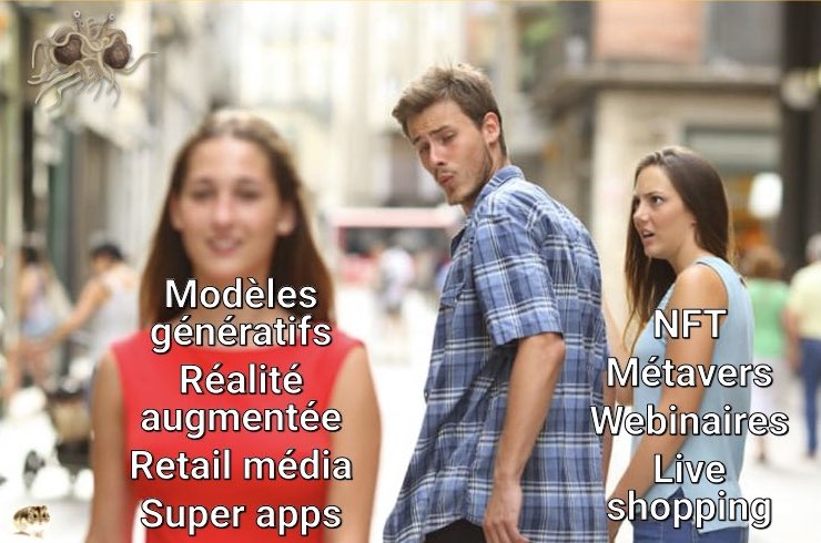 Avant de vous détailler mes 10 prédictions pour 2023, je commence par lister ce dont je ne parlerais pas : le live shopping, le métavers, les NFT, la blockchain… Tous ces sujets, technologies ou usages sont déjà présents dans le quotidien des utilisateurs, plus ou moins, aussi je n’essaierais pas de vous les “vendre” comme des innovations et les laisserais tranquillement gagner en maturité.