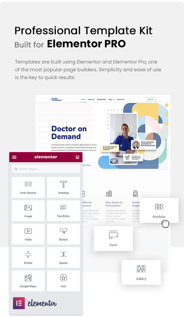 Caractéristiques du kit de modèles Doctor on Demand Elementor