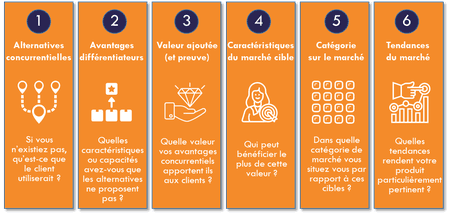 On peut trouver sur le Net de nombreux modèles pour formaliser le « positioning statement », c’est-à-dire un document à vocation interne pour formaliser et partager le positionnement produit. Mais, là n’est pas l’essentiel. L’important, c’est la démarche à suivre pour déterminer et s’accorder sur les piliers du positionnement. April Dunford, dans son livre « obviously awesome: how to nail product positioning so customers get it », élabore une méthodologie sur la base de cinq piliers : Les alternatives concurrentielles ; les éléments différenciateurs par rapport à ces alternatives ; la valeur ajoutée et les bénéfices qu’apportent ces éléments ; la cible privilégiée qui pourra pleinement bénéficier de cette valeur ; la catégorie de marché sur laquelle il faut se positionner pour attirer l’attention de cette cible.