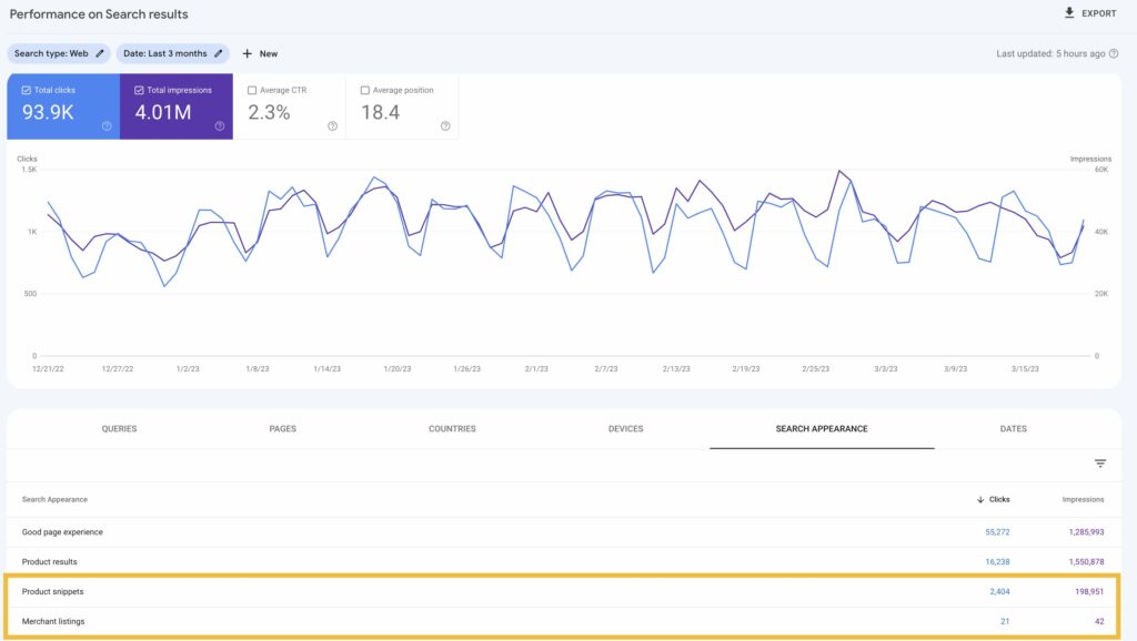 Depuis le 27 février, Google a ajouté la possibilité de mesurer l’impact de la liste de marchands en divisant l’apparence de recherche des résultats de produits en deux catégories : les listes de marchands et les extraits de produits.