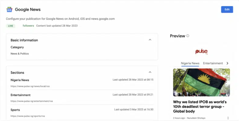 • Établissez une forte présence dans Google Publisher Center : ce n’est pas obligatoire pour apparaître dans Google News, mais cela vous offre plusieurs avantages comme être éligible à l’emplacement Kiosque, classer vos contenus dans des sections ou développer votre audience.