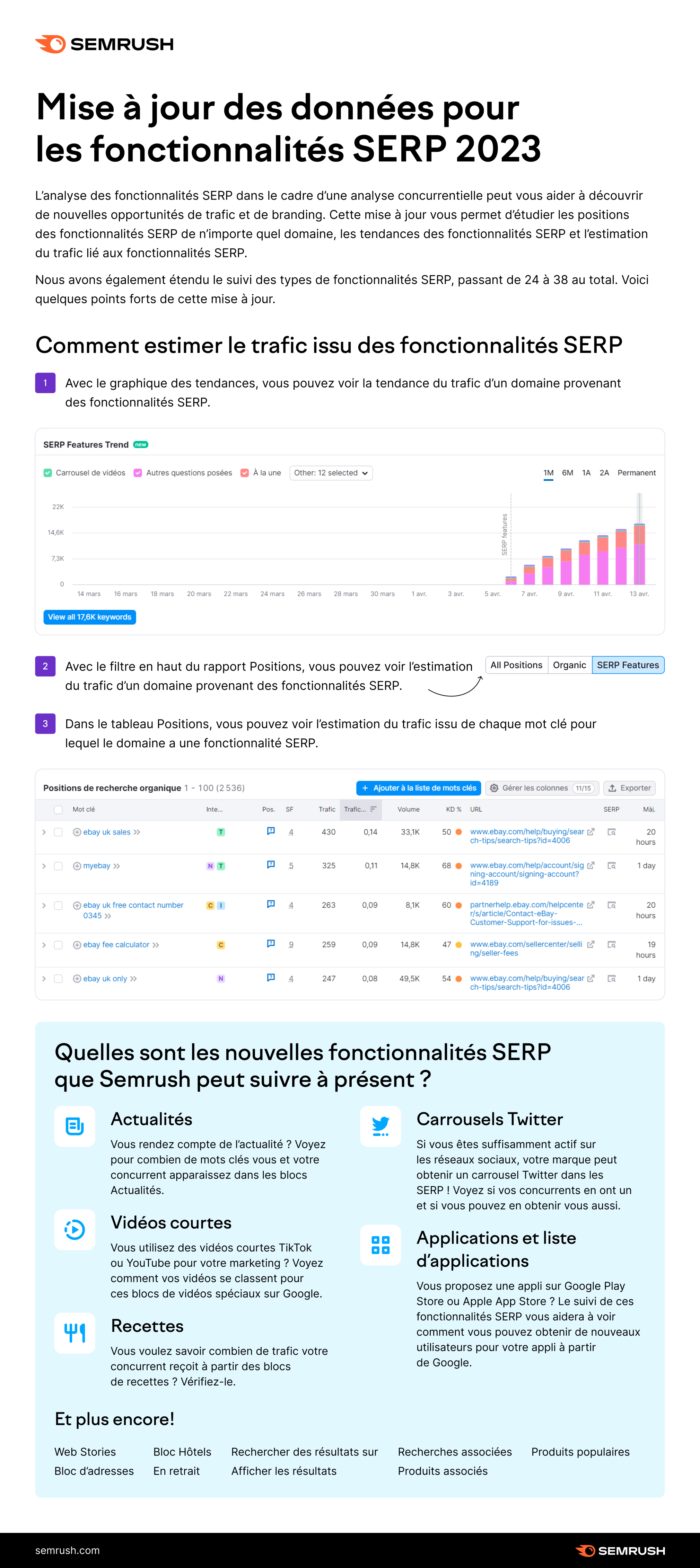 Pour en savoir plus sur les nouvelles fonctionnalités SERP que vous pouvez désormais suivre, cliquez sur les liens ci-dessous.