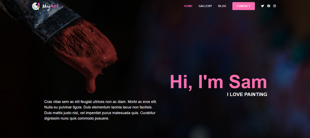The homepage features a large carousel slider that can be used to display featured works of art. Customizable portfolio pages are also available to help you feature your artwork in beautiful layouts.