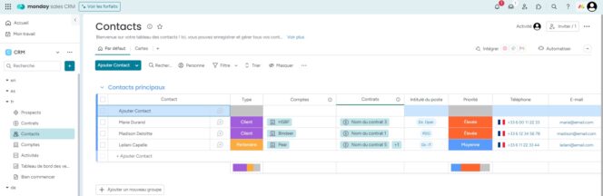 monday sales CRM est un CRM complet qui reprend toutes les fonctionnalités indispensables de ce type d’outil, mais qui propose une réelle facilité de prise en main. Il vous suffit de quelques clics pour vous ouvrir un accès et commencer à gérer vos clients, prospects et contrats sur la plateforme et suivre en temps réel toutes vos opportunités de vente.