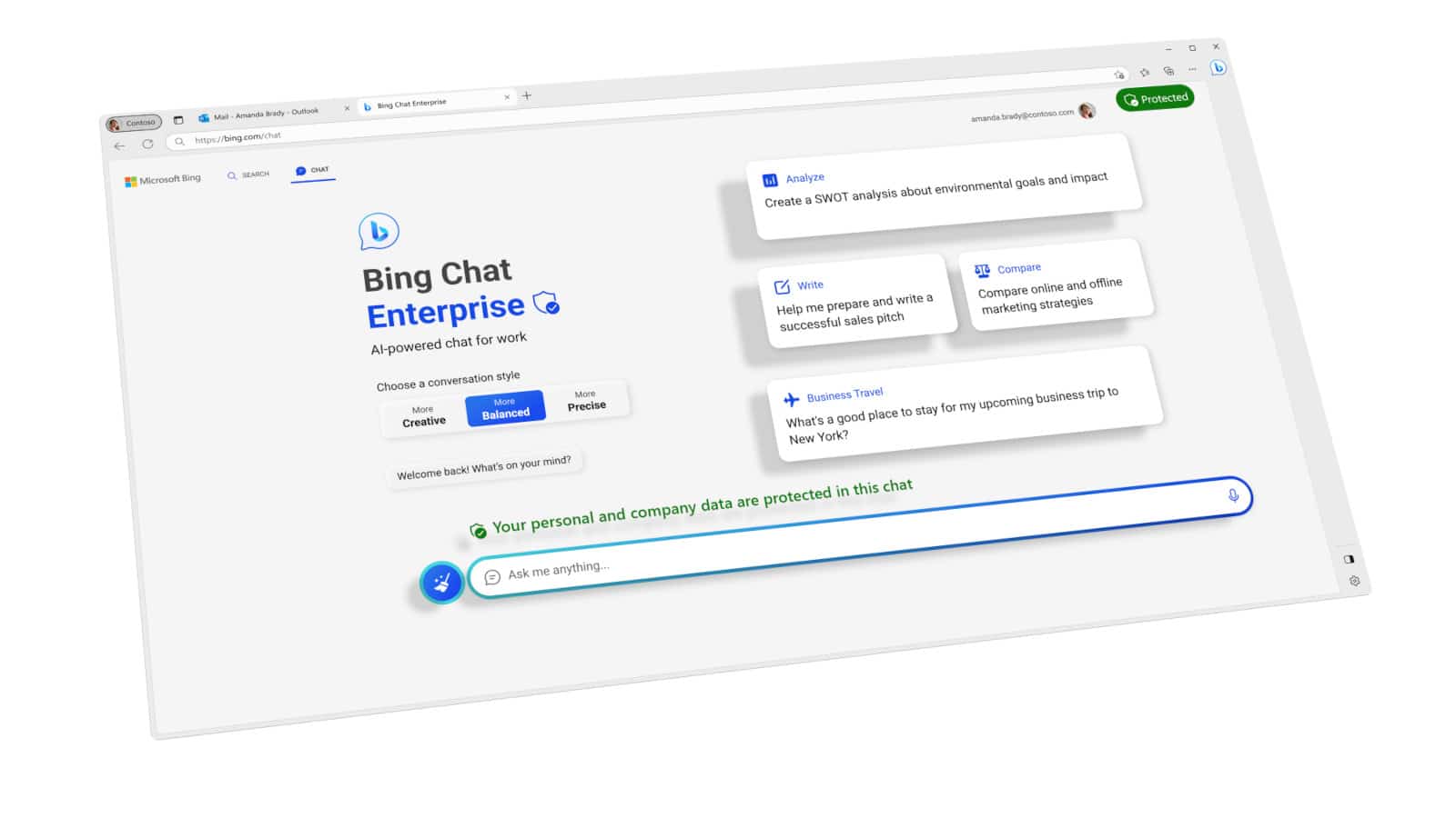 “Bing Chat Entreprise donne aux utilisateurs l’accès à de meilleures réponses, à une plus grande efficacité et à de nouvelles façons d’être créatifs”.