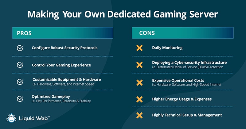 While making your own dedicated game server comes with many benefits, you should consider a few cons before creating one. These servers require: