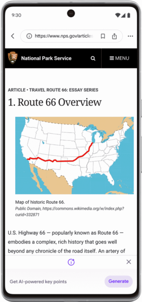 • SGE while browsing permet d’obtenir les points-clés d’une page et les questions auxquelles vous pouvez trouver une réponse ;