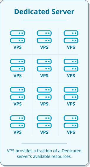 Your virtualized private server runs on a parent server alongside a number of other VPSs that each are allocated a finite amount of that server’s resources (the RAM, CPU cores, and disk space included in your plan).
