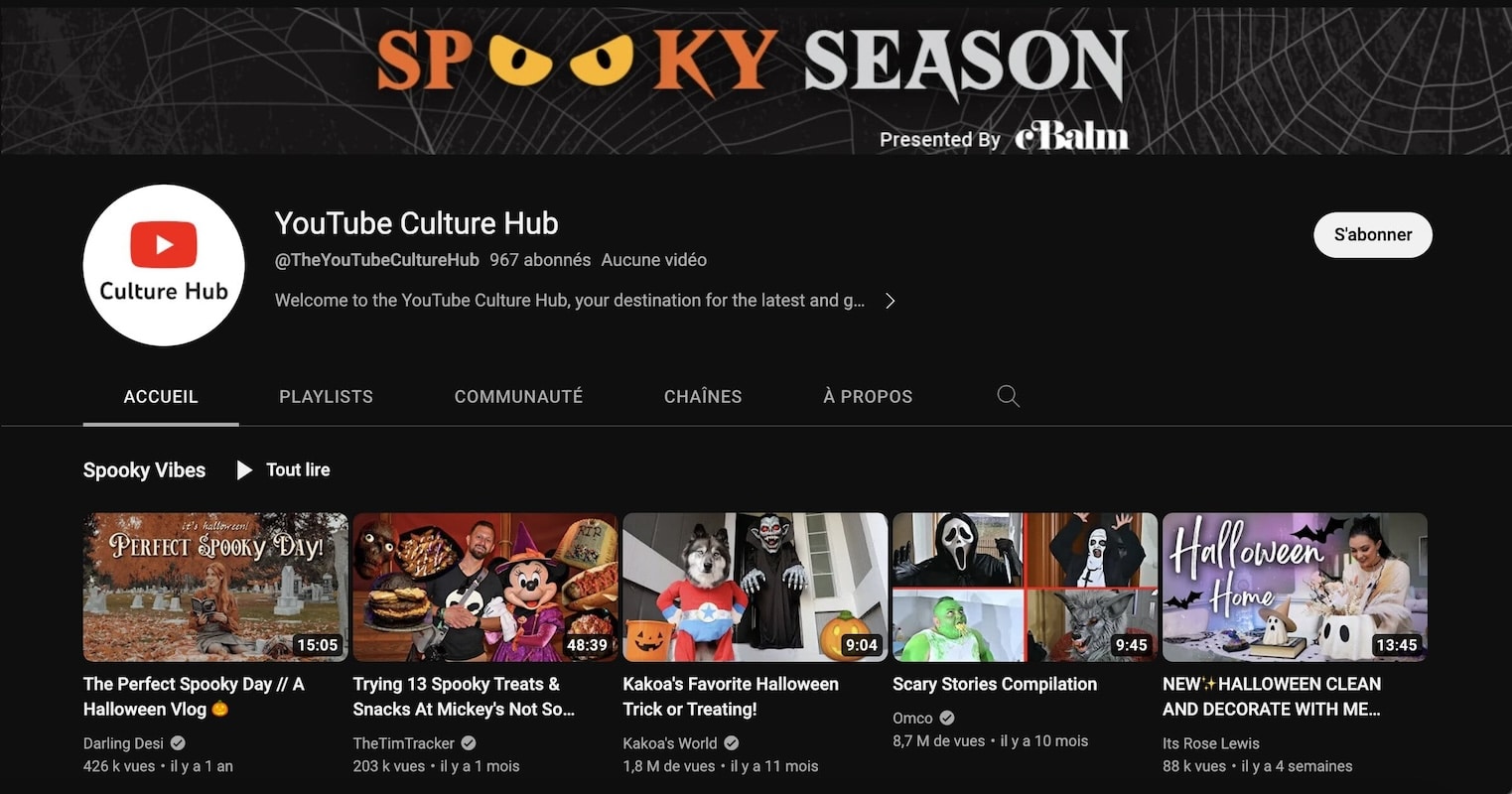 Toutes les vidéos sont réunies dans des listes de lecture sponsorisées sur la chaîne “YouTube Culture Hub”. Elles sont créées et mises à jour selon les événements. Il en existe déjà pour Wimbledon, les Oscars et Halloween.