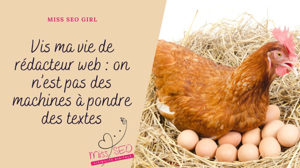À cette époque, oui, j’étais une poule à pondre des textes. Une poule très lente. Mais ça ne me dérangeait pas. J’apprenais le métier et le SEO en rédigeant. Et c’était le plus important.