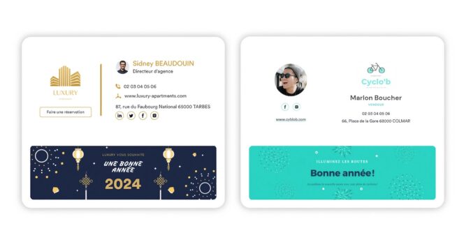 Une excellente pratique est de personnaliser cette signature aux couleurs de l’entreprise, en y glissant par exemple une bannière cliquable qui peut renvoyer vers vos vœux, vers une vidéo bilan, ou en intégrant une image ou un GIF festif renvoyant vers votre site. Et avec le bon outil d’analyse, il sera simple d’évaluer le ROI de la méthode.