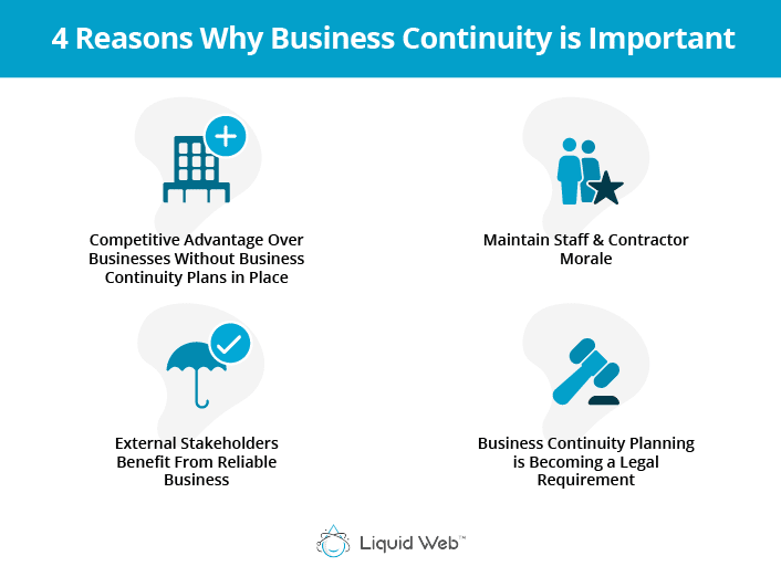 - Business continuity planning is quickly becoming a legal requirement due to the increasing number of businesses failing because of inadequate risk management or recovery plans.