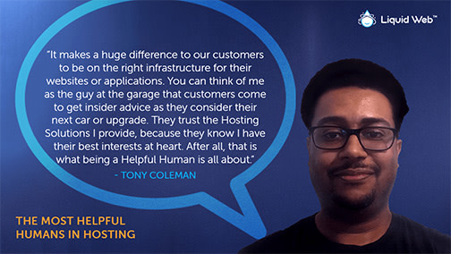 When he saw a posting for Liquid Web as a Hosting Advisor, he applied right away, ready to expand his technical expertise in the world of Web Hosting. He has been enjoying his career at Liquid Web ever since. These days, Tony is ensuring our existing customers have the best solution for their business needs as a Standard Hosting Account Manager.