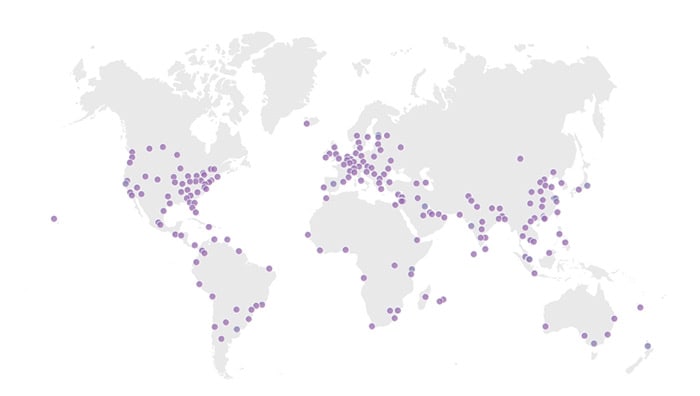 Map of the worldwide locations of cloudflare servers