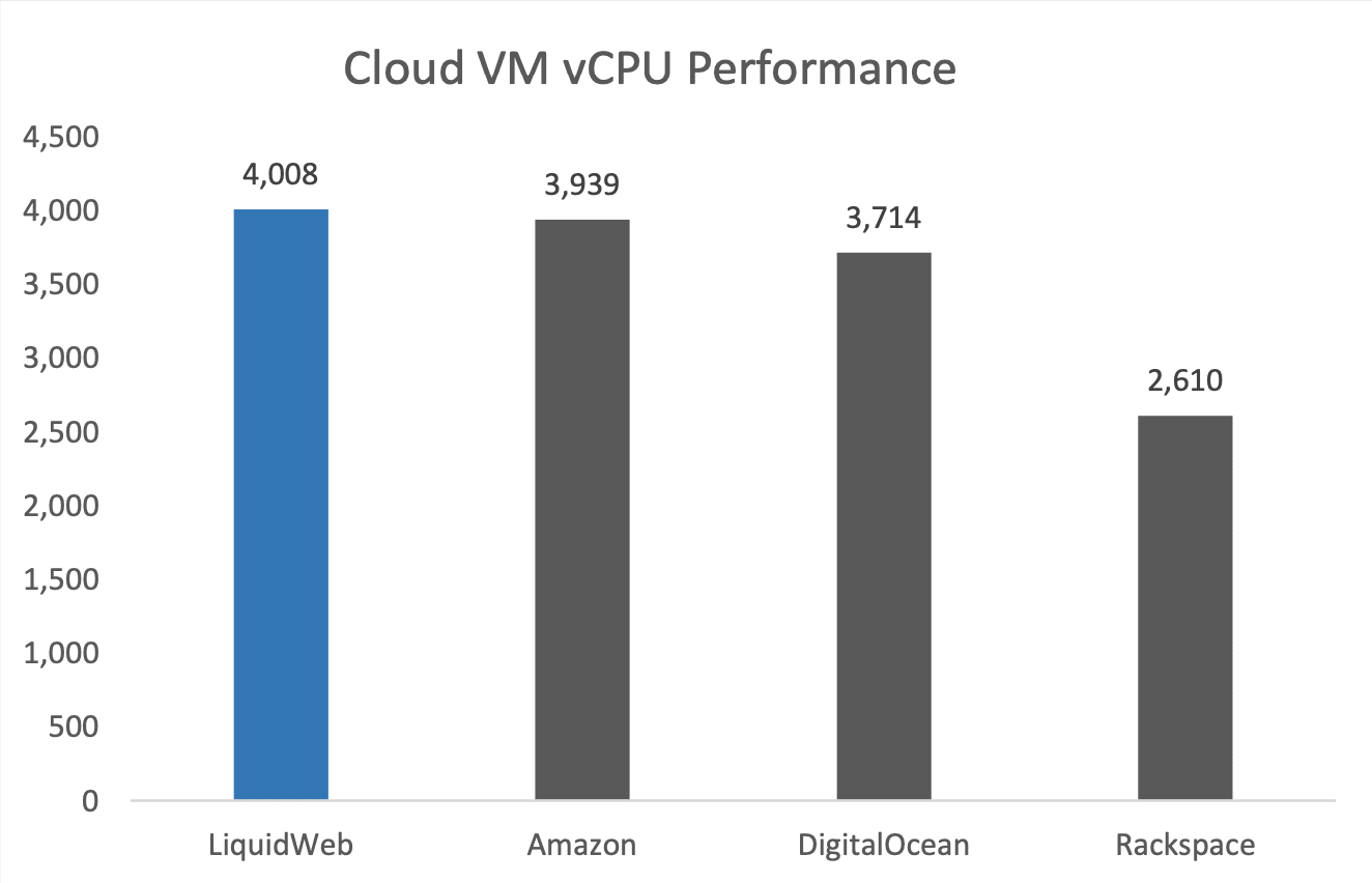 Cloud Spectator collected data on entry-level virtual machines (VMs) across Liquid Web (VPS), Amazon, Rackspace, and DigitalOcean for 48 hours. In those 48 hours, Cloud Spectator ran multiple types of performance tests. The median results are in their report.