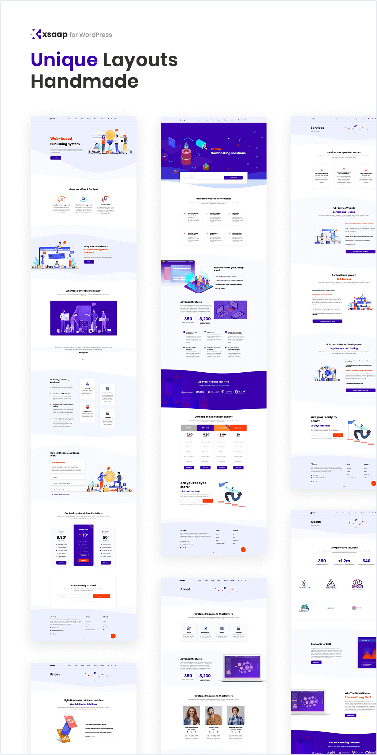 Xsaap is a WordPress Template for SAAS, Startups, or Product Applications, Web Development, SEO Services, Hosting, etc. Multifunctional blocks and elements for any business needs. You can also present your services or products in any case – portfolio, services blocks, or price tables. Bright Call to Actions blocks makes perfect advertising for your services. All blocks or elements can be easily modified or animated for the best way of web development.