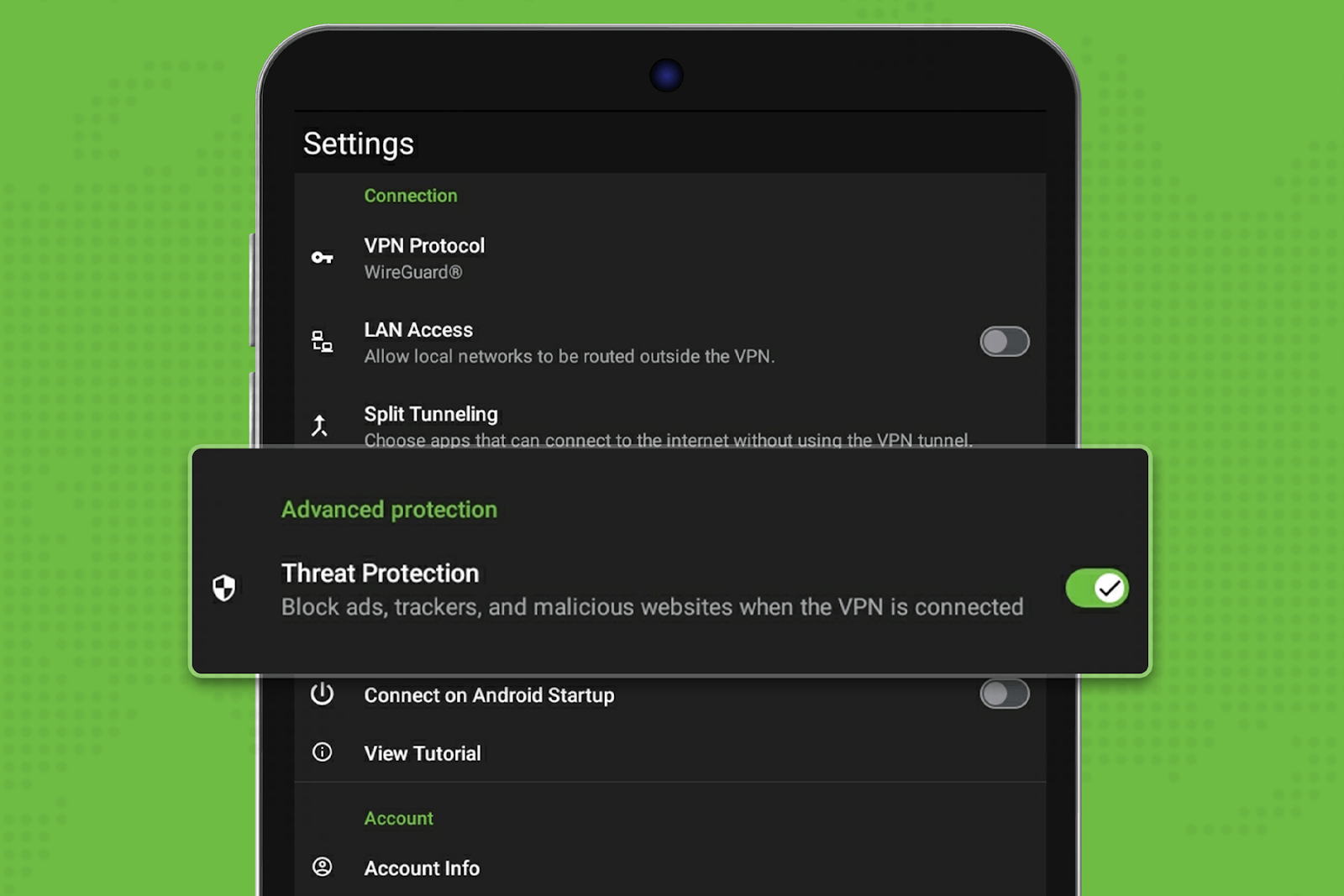 - Enable Threat Protection: Navigate to the Settings menu within the app and enable Threat Protection under the “Advanced protection” section.
