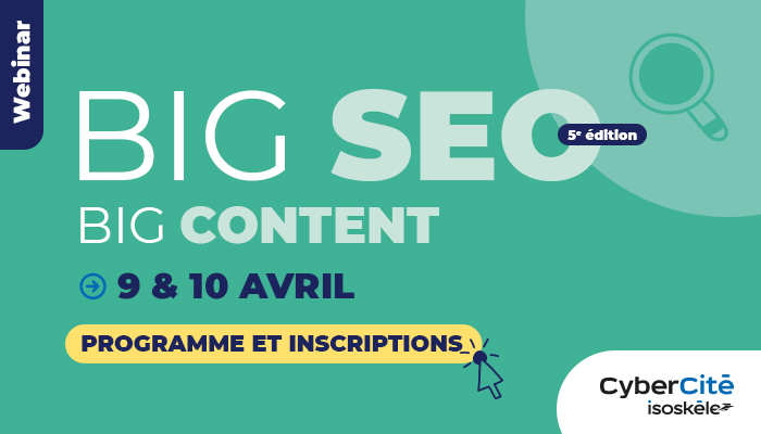 Voilà déjà 5 ans que CyberCité, l’agence experte en Search et Marketing Digital, organise cet événement en ligne devenu incontournable : BIG SEO ! RDV les 9 et 10 avril prochains pour 2 jours de conférences en ligne animées par des professionnels.les du digital. Et pour cette nouvelle édition 2024, c’est par le prisme de l’IA que les expert.e.s CyberCité, accompagné.e.s par Dn’D et Krooga, animeront 12 webinars en direct et accessibles gratuitement, pour une exploration approfondie du SEO et du Content Marketing…