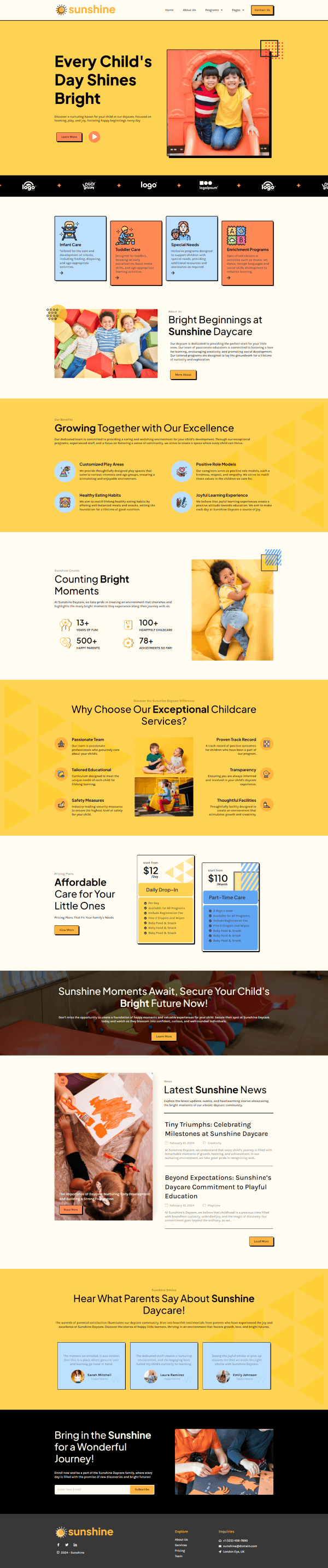 Sunshine is an Elementor template kit for Daycare with a bright and cheerful design crafted with love for childcare and early education providers. This template is designed to create a warm and inviting online presence for your daycare center, fostering trust and assurance for parents seeking a nurturing environment for their little ones.