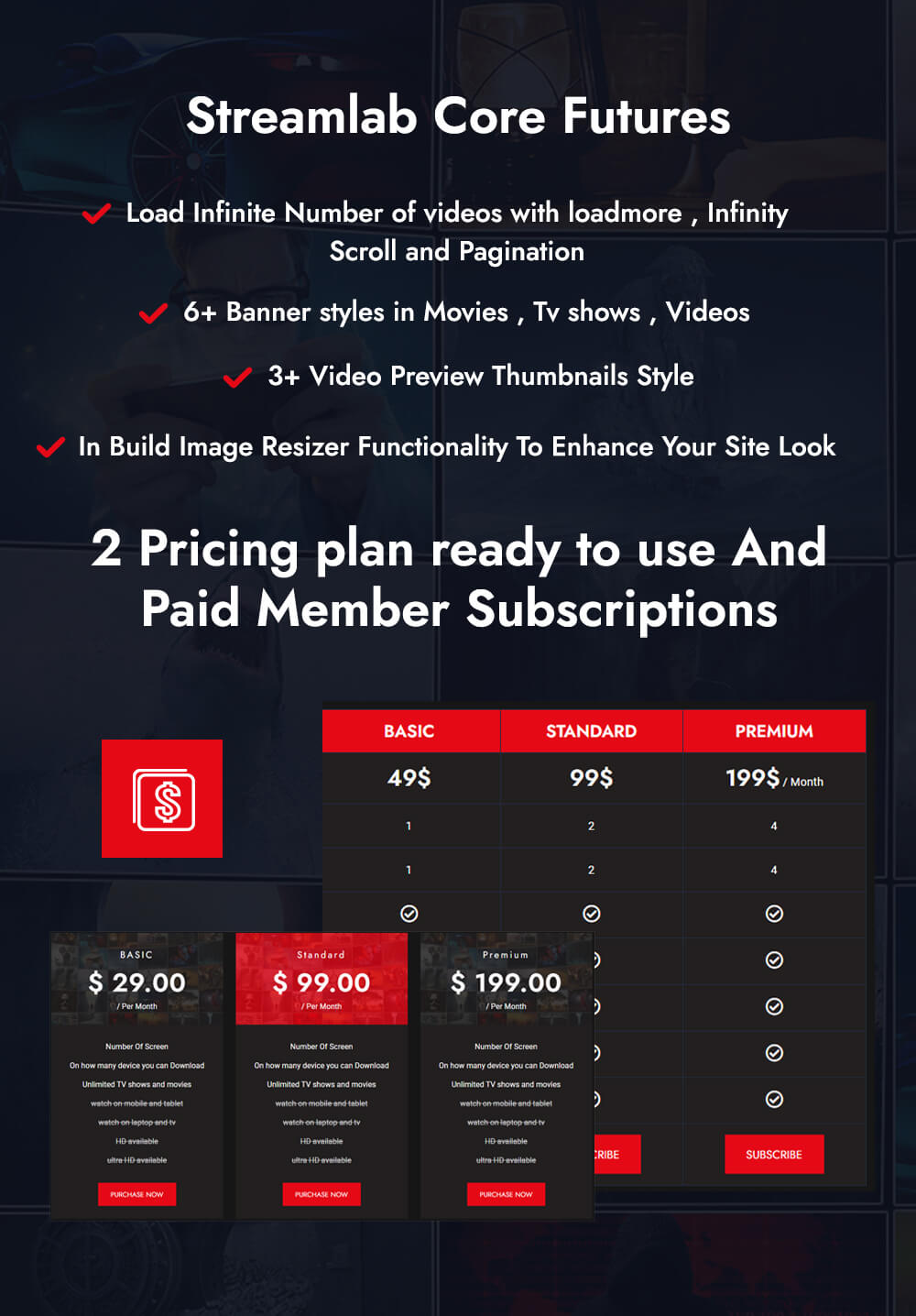 It has beautiful front-end pages, a fully functional admin panel, a rating list, and a user list. You can add movies as well as shows on Streamlab. pricing page. It is an extremely functional and easy steering feature. Streamlab is perfectly apt for creating video blogs, video tutorial sites, and podcasts.