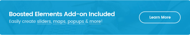 - Boosted Elements Add-on included – Easily create sliders, maps, popups & more with this premium plugin