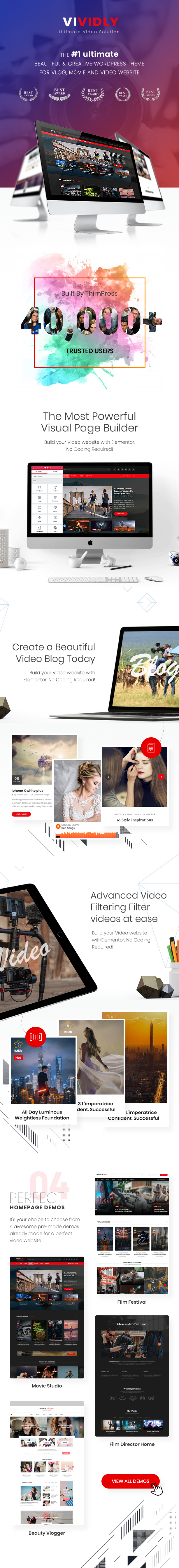 Vividly is a creative WordPress video theme suitable for videos, filmmakers, vloggers, Youtubers, streamers, gamers, movies, magazines, video blog (vlog) websites. Whether you want to build a personal blog including website or a video showcase for your company, Vividly will be a tremendously intuitive, suited to be deployed for a number of different websites and projects of all kinds.