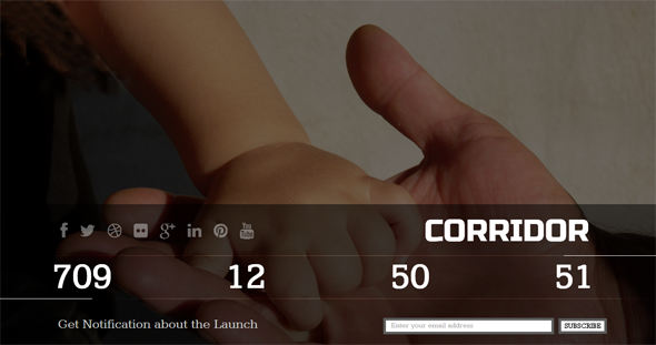 Corridor is a modern, clean Coming Soon HTML Template for any websites. Offers 4 different types, including Image, Simple Slider, Advanced Slider and YouTube Background versions.
