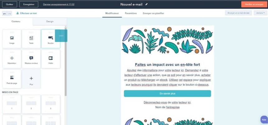 Dans un premier temps, vous devez créer votre e-mail que vous choisissez de diffuser à votre communauté ou à vos prospects. L’outil offre une interface simple d’utilisation avec une fonctionnalité de glisser-déposer : créez vos textes, modifiez la mise en page, ajoutez vos images et vos call-to-action, tout est modifiable ! Aucune technique spécifique n’est requise, mais si vous voulez être encore plus rapide, il existe une bibliothèque de modèle pré-conçu que vous pouvez également personnaliser.