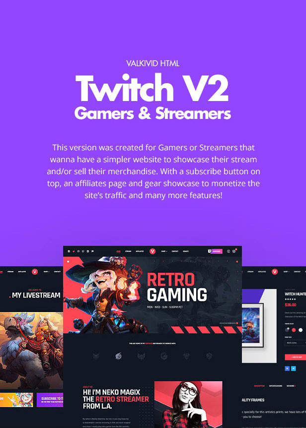 With 4 different versions (2 YouTube and 2 Twitch) you can choose the one you like the most! Including blog, shop, events, streams, videos pages and much more.