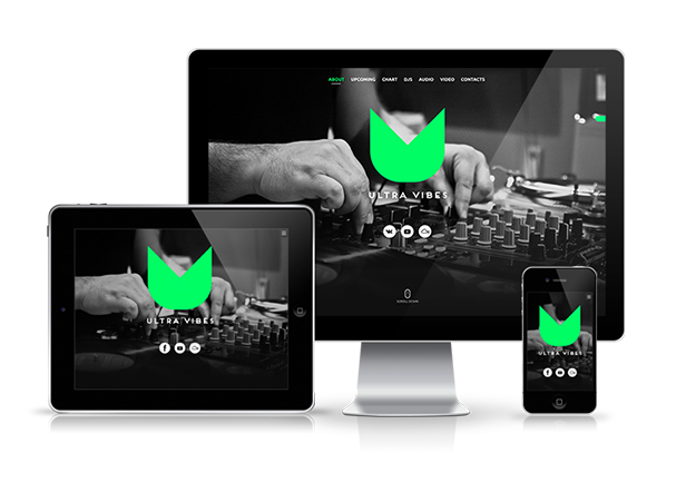 Ultra Vibes – fresh professional Adobe Muse template for DJs and producers who want promote his music podcasts / radio show.