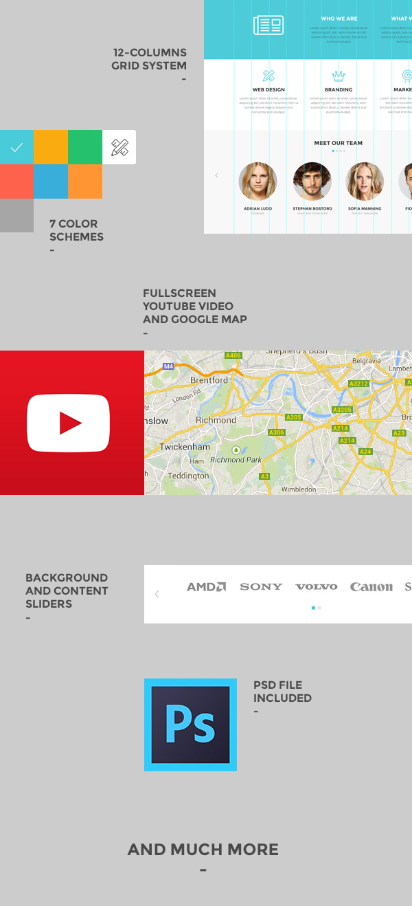 Aquatic – HTML5 one page template for business and creative company or personal website. It’s fully responsive and available for all screen sizes, from desktop and notebooks to smartphones and tablets. Template focuses on displaying a high quality content and can be customized easily to suit your wishes.