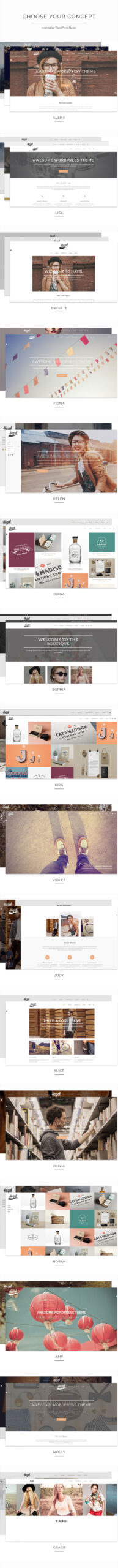 Hazel is multi-purpose, clean, elegant, hipster, responsive WordPress theme ideal for creative use, photography, portfolio showcase, modern businesses, agency, fashion, blog, shop, personal use, etc. Hazel is highly customizable theme with unlimited combinations of header layouts, fullscreen layouts, title area layouts, mega menu, side menu, video option and tons of shortcodes. With powerful and flexible theme options, included page builder, it gives freedom to create beautiful web sites and unlimited number of different page layouts.