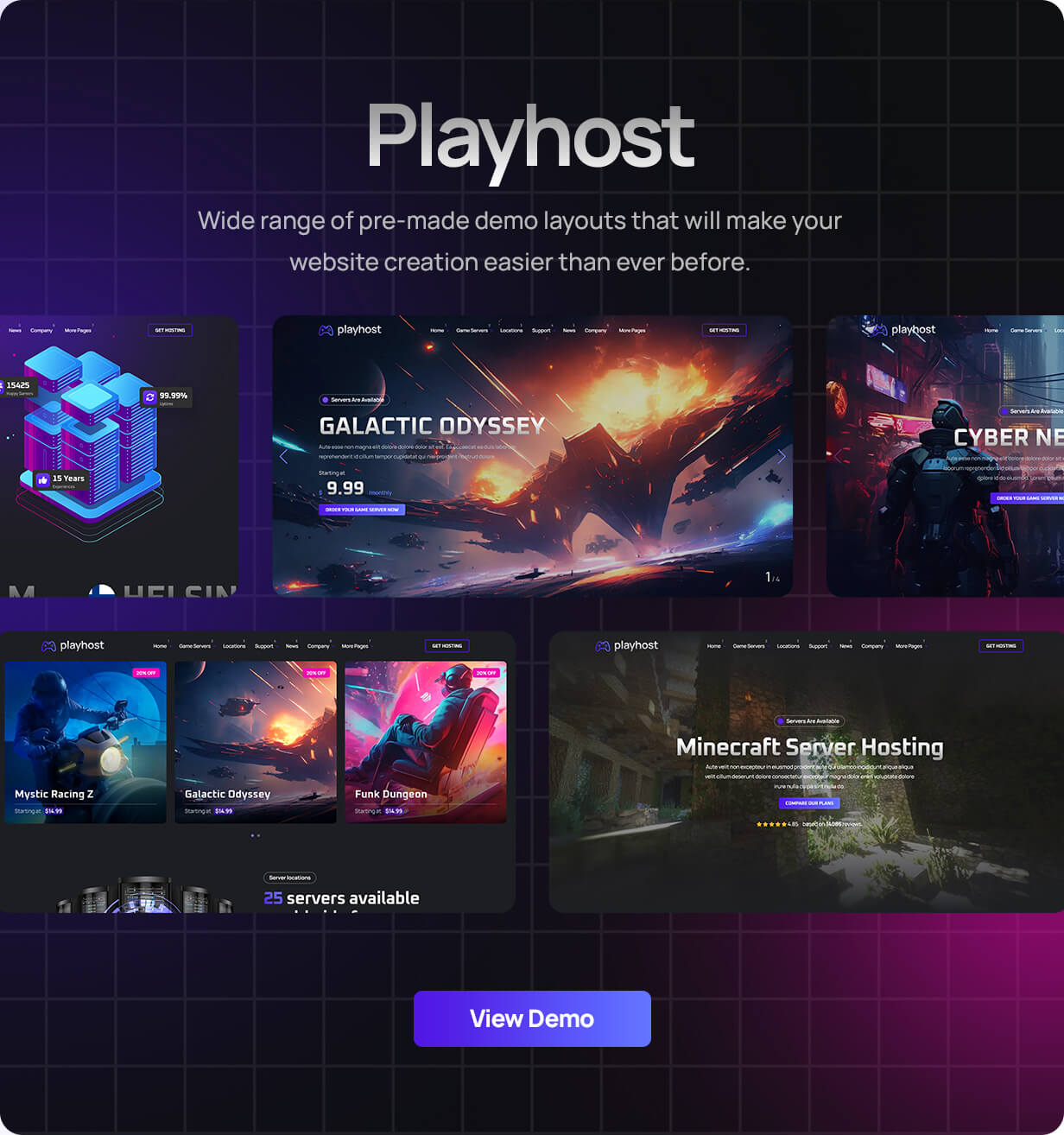 Playhost is the best-selling game hosting template on ThemeForest ever. Come with modern designs tailored to fit the game-hosting industry to make your website stand out. It’s made using only the finest coding and design practices by an experienced ThemeForest author with over 15 years of experience. Playhost has stunning styles and elements to help you make a professional website in no time. Get Playhost now!