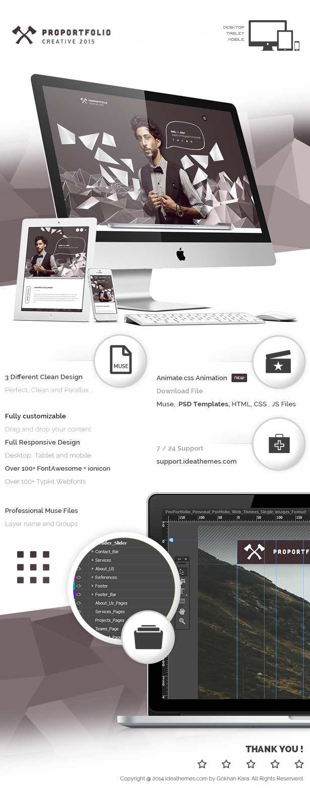 • Psd, Muse, HTML, CSS, JS Files