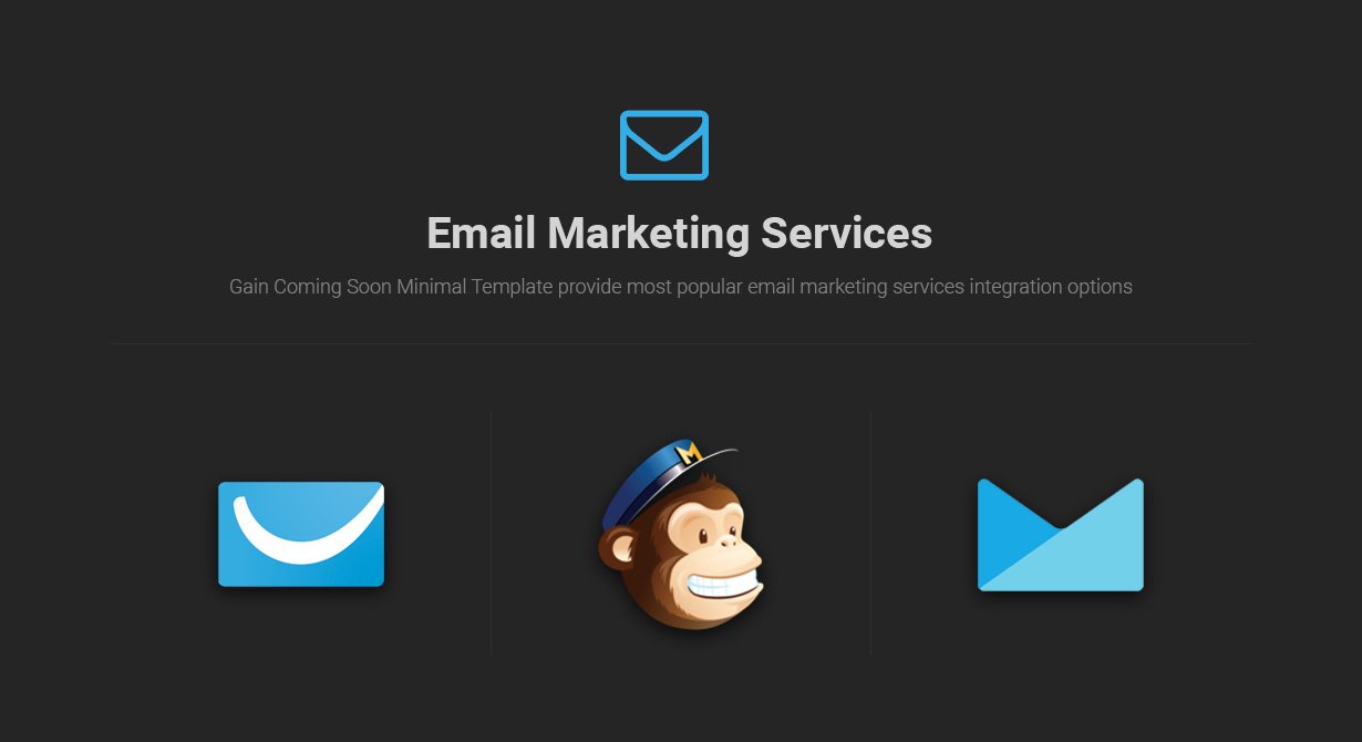 Gain Coming Soon Minimal Template elegant versatile coming soon HTML template. It helps for hyping your next upcoming ideas. Gain Coming Soon Minimal Template comes up with different version and ready demo, many different features like Slideshow background, Youtube video background, AJAX form, countdown timers, and many more features. Gain Coming Soon Minimal Template has feature to integrates with MailChimp, Campaign-monitor, Get-response as well as offline file mode. Gain Coming Soon Minimal Template fully flexible and multi-use template. You can use according to your requirements.