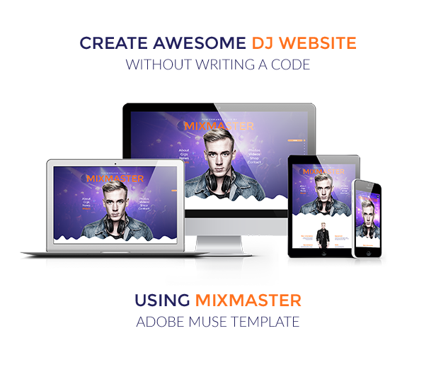 MixMaster – professional Adobe Muse template for DJs and producers who want promote yourself on the web.