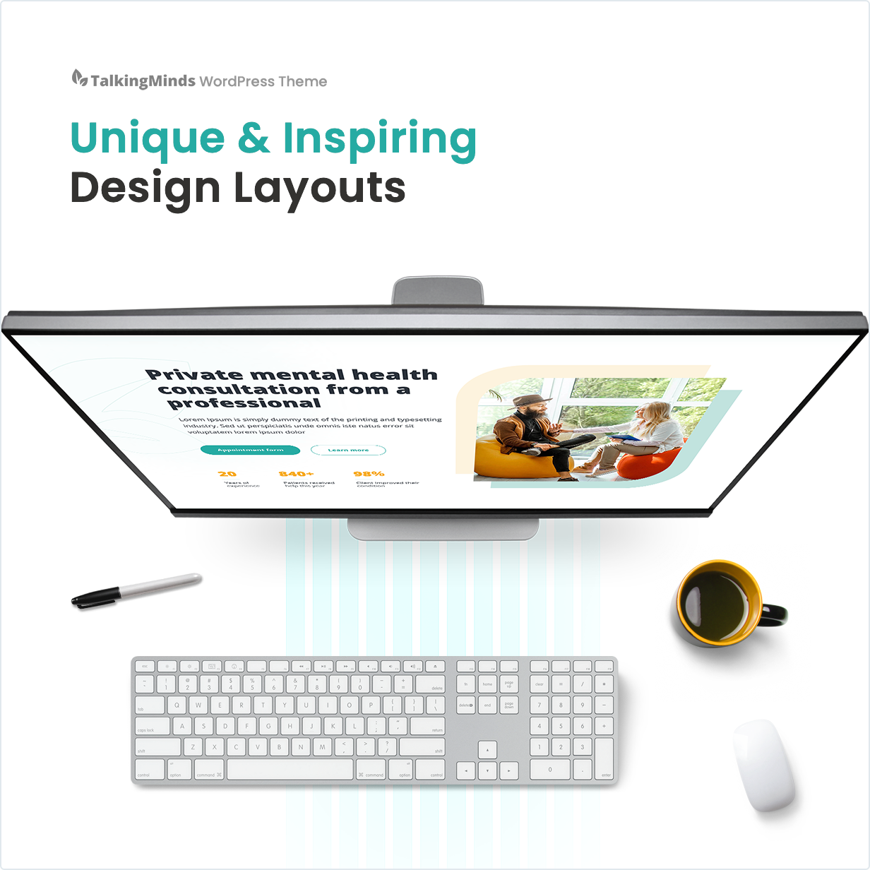 Talking Minds is a WordPress theme for mental health specialists, psychotherapists or personal coaches, as well as for psychological clinics that practice group and individual therapy sessions. Unique and calming design for your website. Created with Elementor page builder.