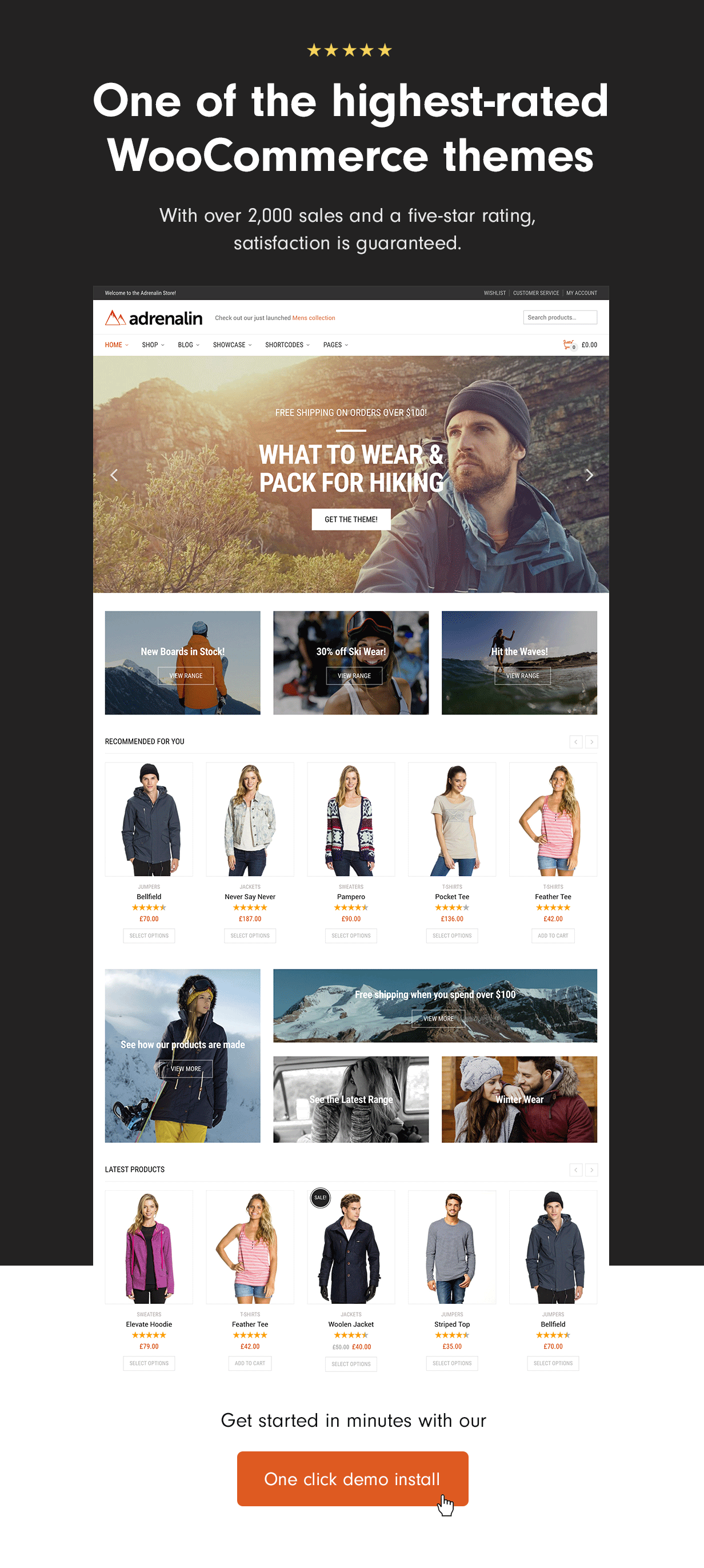 Installing the Adrenalin theme demo data takes just minutes allowing you to get up and running in no time at all.