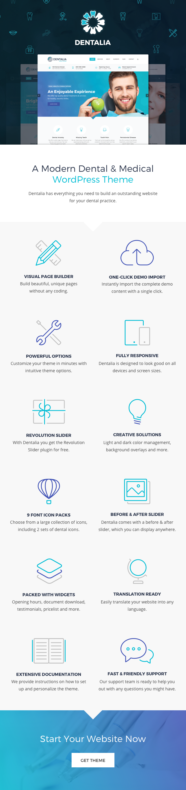Dentalia is a highly customisable WordPress theme, perfectly suitable for dentists, healthcare professionals and companies that offer medical services. Dentalia has everything you need to build an outstanding website