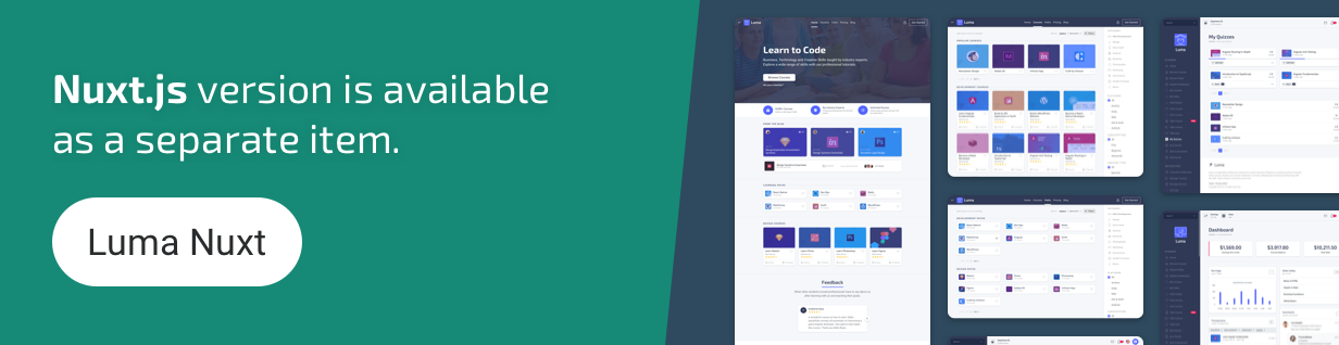 A beautifully crafted user interface with HTML, CSS and JavaScript for modern Education Platforms. Includes Courses & Tutorials, Video Lessons, Student & Teacher Dashboard, Curriculum Management, Earnings & Reporting, ERP, HR, CMS, Tasks, Projects, eCommerce and more.