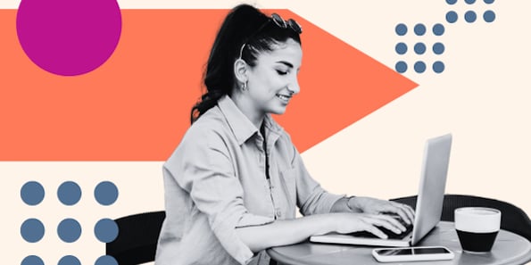 Omniscient Digital helps ambitious B2B brands turn content and SEO into business growth channels. Their banner shows a laptop on a table, with someone’s hand working on it. Nearby is a mug, a piece of paper, and a pen.