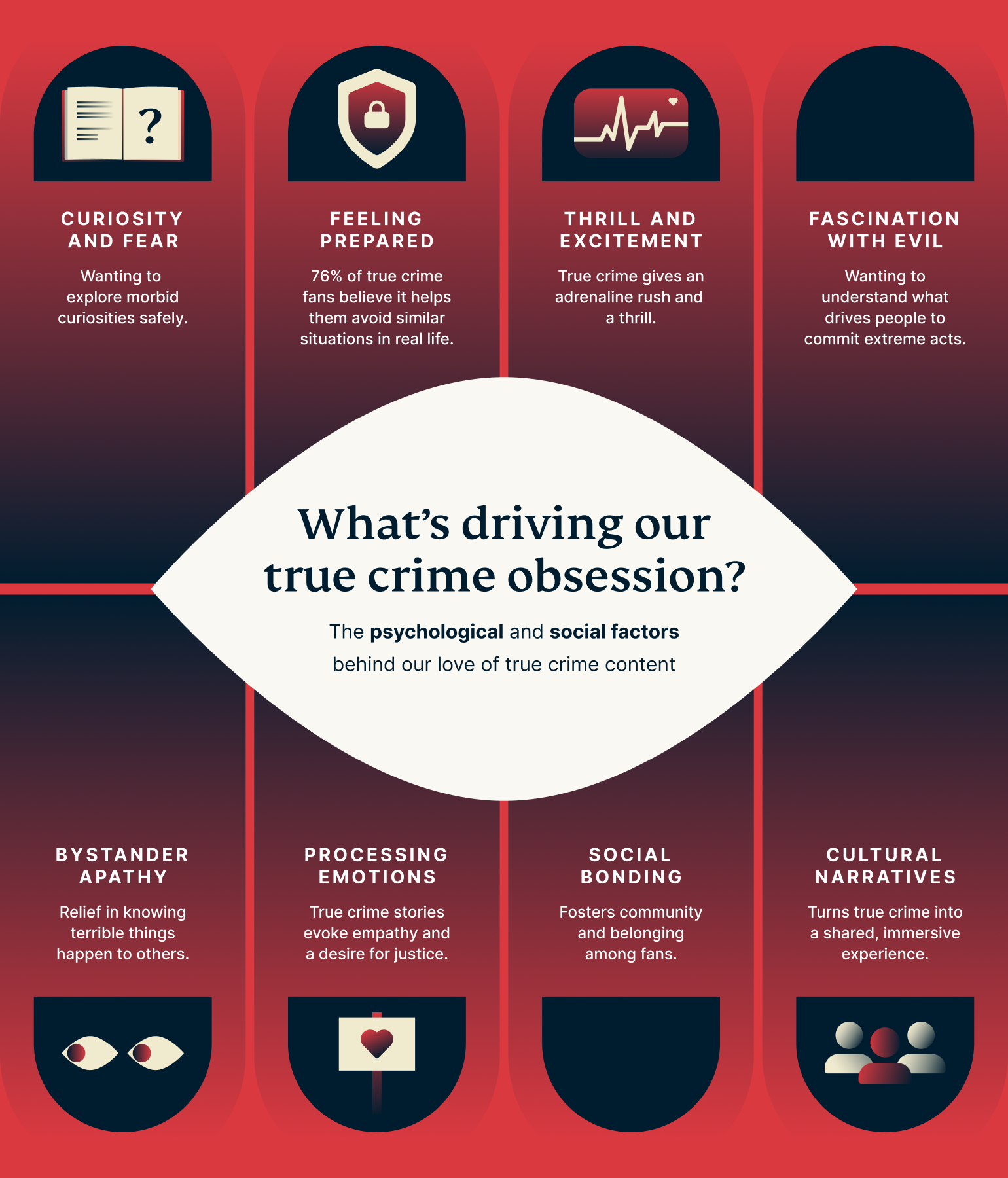 - Psychological factors like curiosity, fear management, and thrill-seeking drive our obsession with true crime.