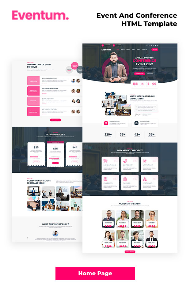 Eventum – Event & Conference HTML Template created especially to build versatile sites such as conference, event, exhibition, expo, festival, invitation, meeting, Meetup, seminar, workshop and all other event & conference websites. It includes ready-to-use beautifully crafted HTML Templates.