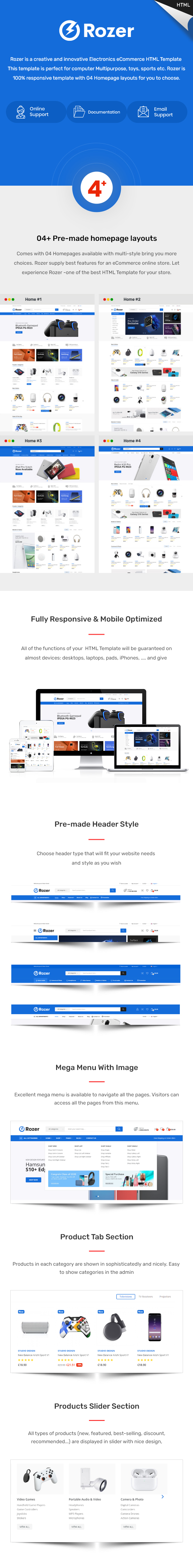 Main Features List of Rozer – Electronics eCommerce HTML5 Template