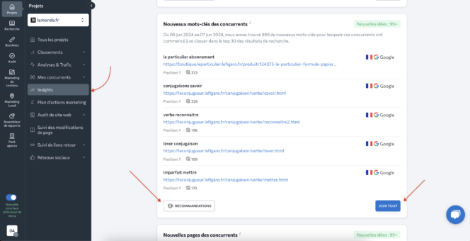 Des insights sur vos concurrents et une analyse des tendances