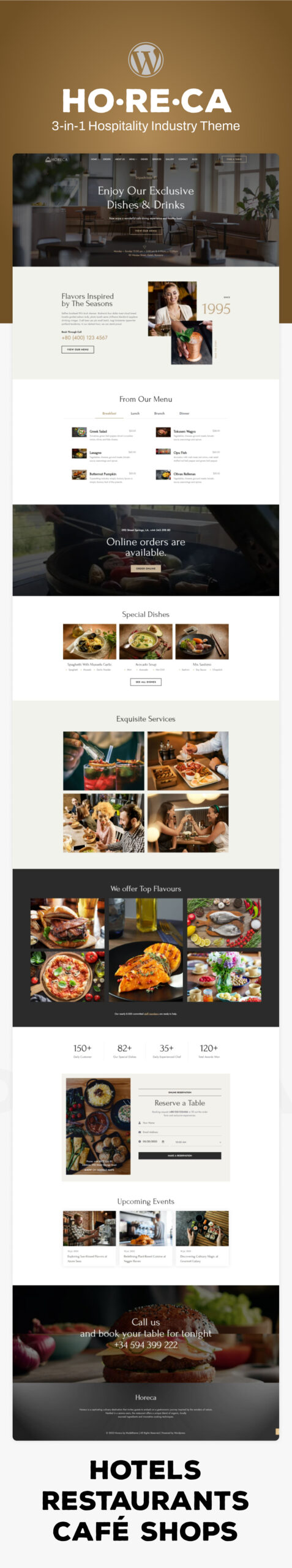“HoReCa” is a dynamic and visually engaging WordPress theme designed specifically for businesses in the hospitality and catering industry. Our theme offers a range of customizable features, including menu integration, reservation booking forms, and photo galleries, allowing businesses to showcase their offerings and ambiance effectively.