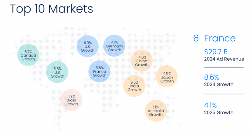 Les 10 plus gros marchés publicitaires en 2024. Illustration : GroupM.