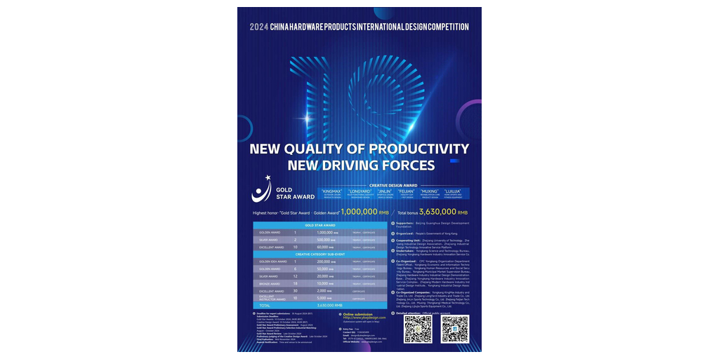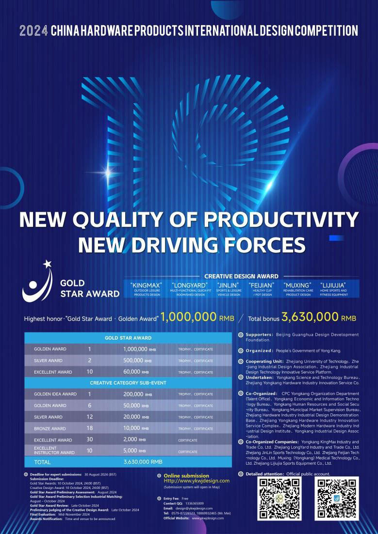Ce concours prestigieux sert de plateforme pour présenter et promouvoir l’innovation dans la conception de matériel informatique, en encourageant la collaboration entre les concepteurs, les fabricants et les experts de l’industrie du monde entier. Le comité d’organisation, composé d’éminents représentants du gouvernement populaire municipal de Yongkang, du bureau des sciences et technologies de Yongkang et du Zhejiang Yongkang Hardware Productivity Promotion Center Co., Ltd, s’attache à respecter les normes les plus strictes en matière de professionnalisme et d’impartialité. Ils supervisent méticuleusement chaque aspect du concours, de la sélection des juges au processus d’évaluation, en veillant à ce que seules les conceptions les plus innovantes et les plus remarquables soient reconnues et récompensées.