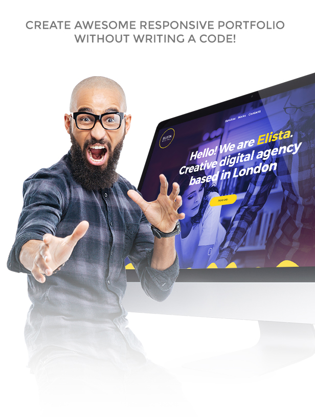 Elista – responsive Adobe Muse template, creative multipurpose portfolio for any needs. It’s simple and clean, cool lookin’ one page template designed for creative agency, freelancers, digital artists, corporate users or any others creative people. You can create unique portfolio without writing code! All elements are completely editable, you can change colors in few clicks, texts or replace the images.