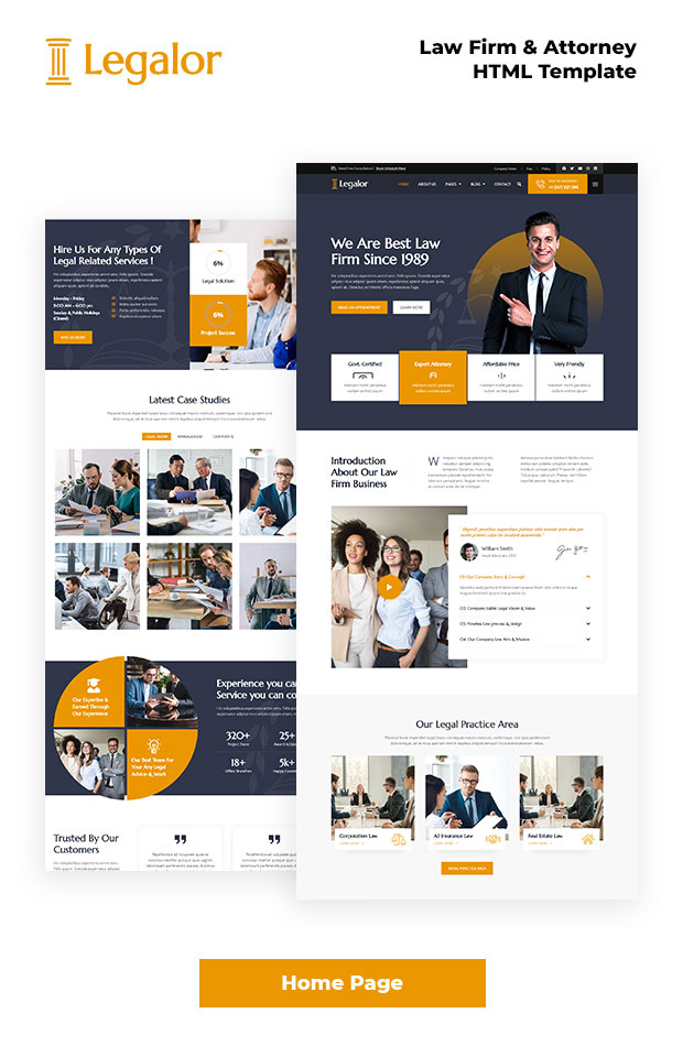 Legalor – Law Firm & Attorney HTML Template created especially to build versatile sites such as attorney, firm, law, law firm, lawyer, legal, professional, service, consulting, court, case, justice, practice and all other Law Firm websites. It includes ready-to-use beautifully crafted HTML Templates.